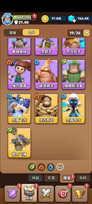 1、对于刚入坑本款游戏的玩家来说,英雄的获取需要用到卷轴,而在日常活动中卷轴的获取难度是非常大的,因此相比于英雄与士兵结合,纯士兵配队更符合玩家前期在游戏内使用。