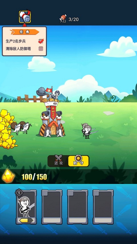 游戏初期兵种的类型还不是很多,通过主线的闯关模式可以不断解锁新兵种。需要玩家注意的一点,不同兵种对于矿石的消耗量不同,随着挑战难度的强化,不仅要合理召唤兵种,还要重点升级已有的兵种,完成兵种进阶。