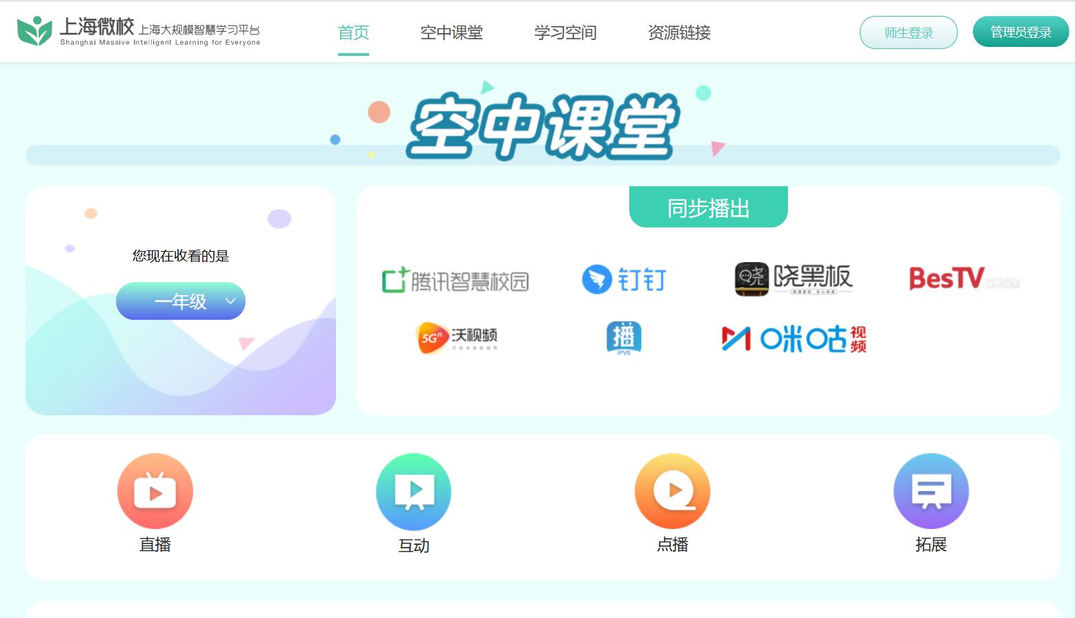 1、进入上海微校首页,在右上角找到【师生登陆】选项,
