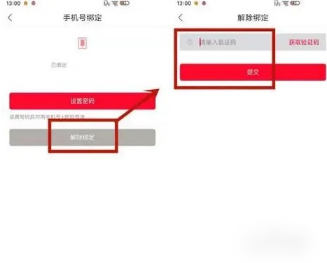 输入手机号接收的验证码后点击提交。这样我们就完成了解绑手机号。