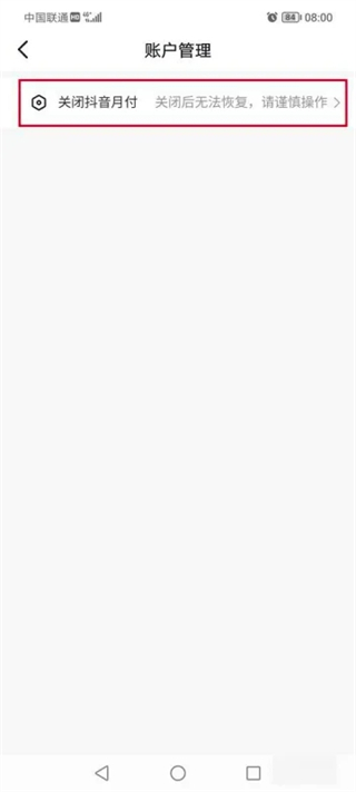 6、进去抖音账户管理之后,点击关闭抖音月付。