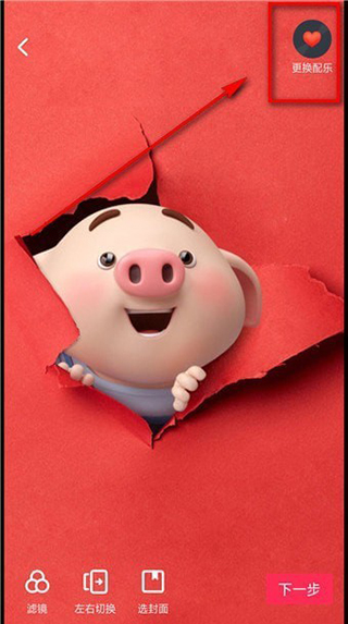 6、我们可以看到右上方就有一个更好配乐的图标,点击【更换配乐】。