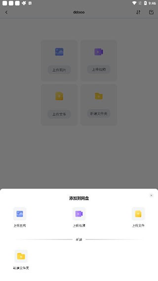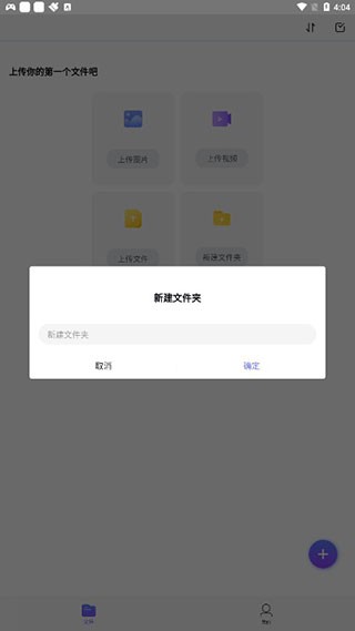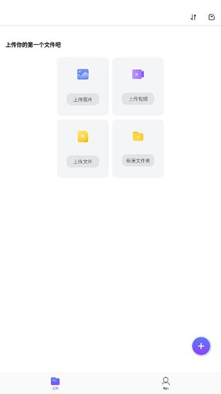 进入文件夹,点击右下角的“+”,选择要上传的文件类型。
