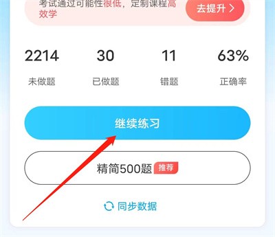 2.在顺序练习的页面里点击“继续练习”按钮,进入到练习面里。