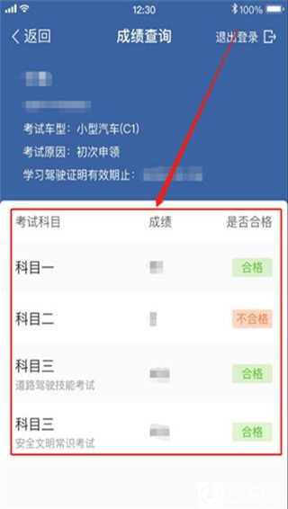 5、之后,点击登录,登录之后,会跳转到成绩页面,显示以往考试记录的成绩。