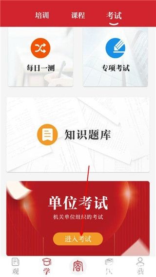 4、在考试界面里,我们点击“单位考试”
