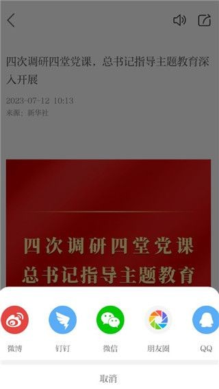 3、在资讯页面里,选择右上角的分享标志
