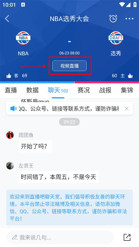 3、然后在赛程中找到你要观看的日期,若当场比赛为直播时间,可直接点击视频直播进行观看。