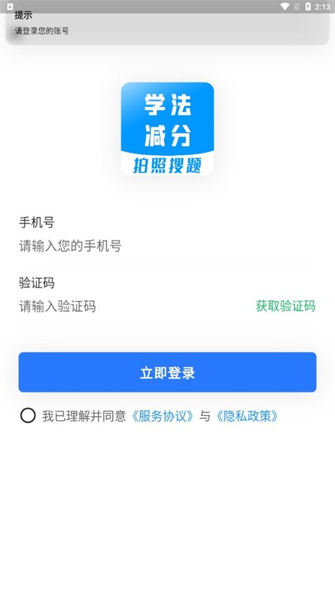 1、首先进入学法减分宝典最新版,然后点击我的,点击登录注册;