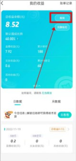 每天最多提现10次(单次最多打款300元)若您提现金额超过300元,请多次操作即可,若是交友频道主播比例可能有所不同,可输入“转人工"详细咨询