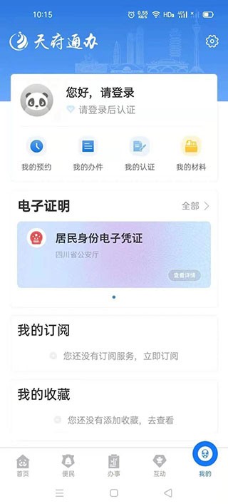 1、下载并安装天府通办app最新版,打开应用并进入“我的”页面;