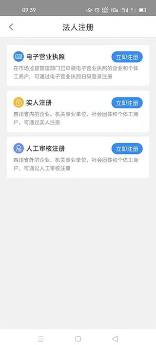 3、进行实人注册,填写法人信息和账号信息,进行人脸识别完成注册;