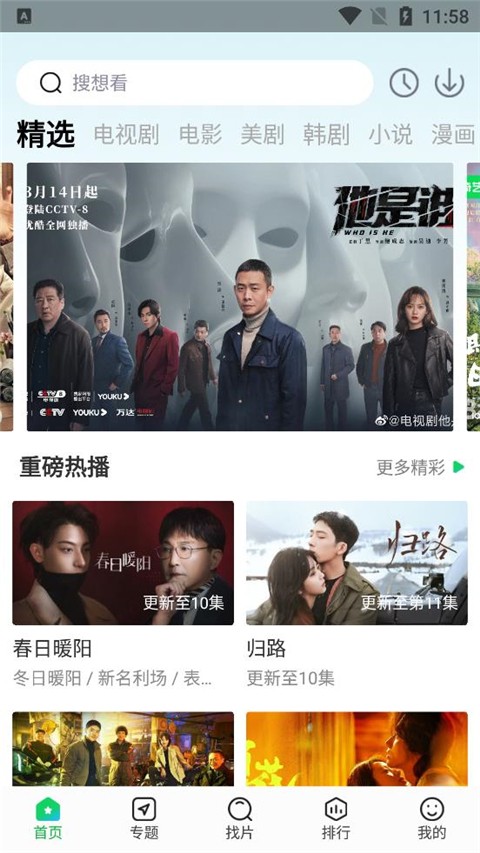 1、首先通过本站下载安装好软件后,点击进入主页,在主页有当下各大视频软件正在热播的电视剧,用户可以直接选择感兴趣的进行观看;