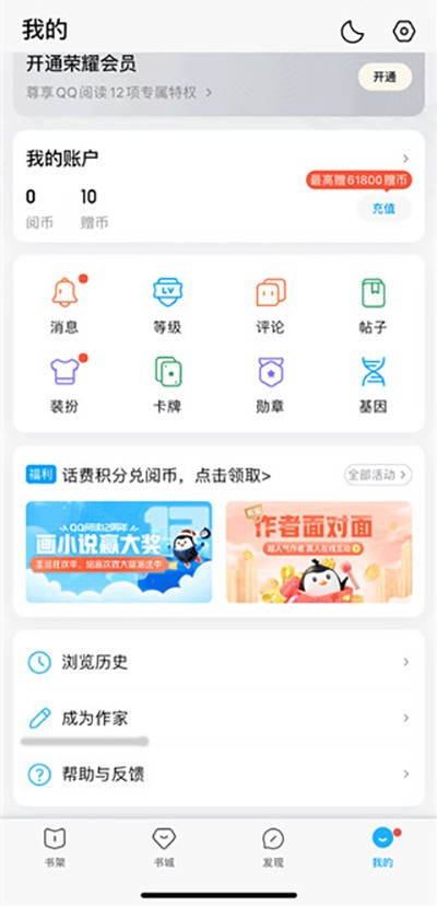 3、新用户首次登录QQ阅读,可获得新用户专属礼包,立享纯净无广告体验!每日签到、阅读小说还能领赠币、抽好礼。