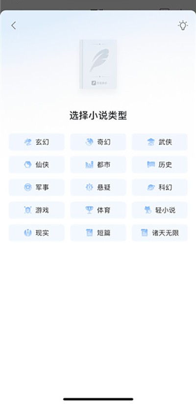 4、接着挑选小说类型,如玄幻、奇幻、武侠、仙侠、都市、历史、军事、悬疑、科幻、游戏、体育、轻小说以及现实、短篇和诸天无限等等。
