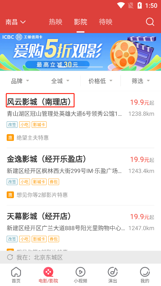 2、选择你想要的影院地址进入;
