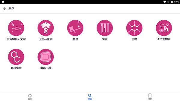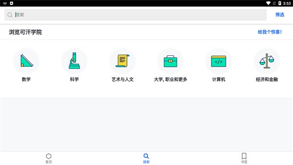 1、双击打开可汗学院中文版app,点击搜索来进行查找;