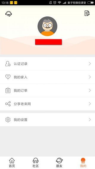 1、在老来网的app中,点击‘认证记录’,会进入到‘认证记录列表’;