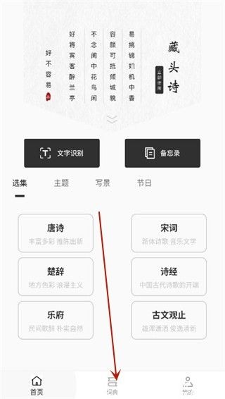 2、来到软件主页,我们点击下方导航栏的“词典”