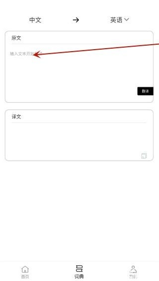 3、进入词典页面,我们可以在上方的文字框中输入想要翻译的文字