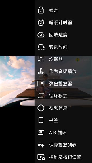 5、点击视频右上角按钮还有很多实用工具,比如锁定屏幕、回放速度(倍速)以及添加书签等。