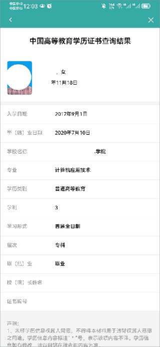 4、点击免费查询后,将进行手机号码的验证,验证通过后就可以查询到学历结果啦