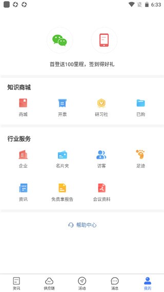 3.【我的】商城订单服务、名片夹、免费报告、会议资料