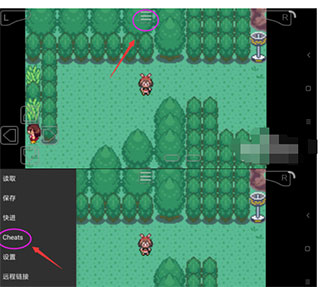 1、打开模拟器,运行游戏后,点击如下图标,选择Cheats;