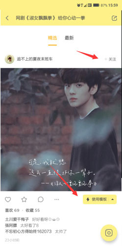 3、然后选择使用模板就可以了。或者你想持续关注这个模板作者,你可以右上角点击关注就可以了。