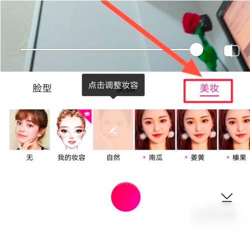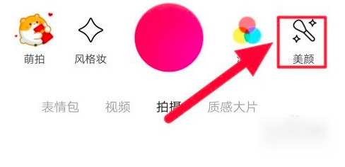 点击相机之后,我们会在下面的工具栏看到萌拍、风格妆、滤镜和美颜四个选项,点击美颜就可以了哦。