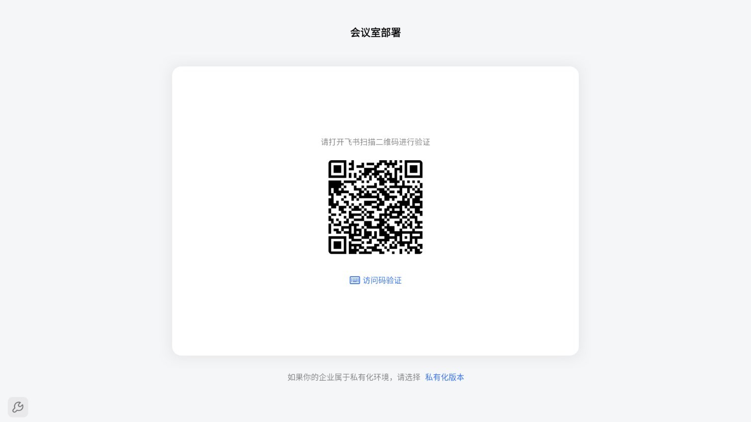 2、打开飞书会议室应用,点击 输入访问码,输入配置会议室部署权限时生成的访问码进行身份验证。完成认证后,在主机端选择会议室,点击 绑定。绑定成功后,线下会议室屏幕将同步显示与控制器配对的字母配对码。