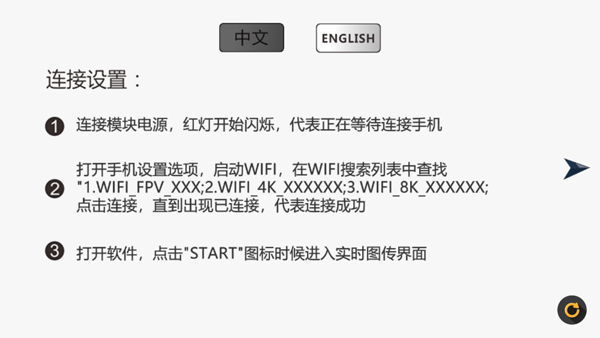 4、看完后,点击start启动,打开无人机产品电源开关,启动WiFi进行连接;