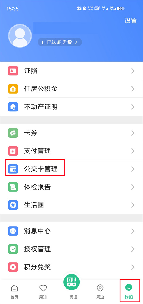 1、首先打开苏周到app,点击右下角“我的”,点击“公交卡管理”;