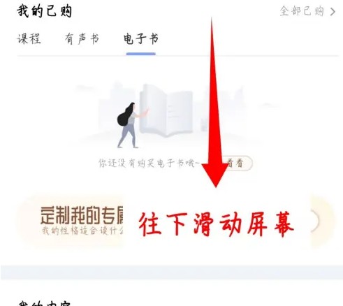 在十点读书的底部选项中,点击右边的我的。如图所示